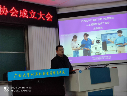 公司常务副经理张振荣在致辞中强调,人工智能是一门综合性的前沿交叉学科,与计算机学科有着最紧密的联系,成立学院人工智能协会的目的是希望在教师、同学、员工和企业之间起到桥梁和纽带作用,加强沟通交流合作,围绕团队建设、人才培养和社会服务等工作,开展科学研究和学科专业竞赛等工作。
